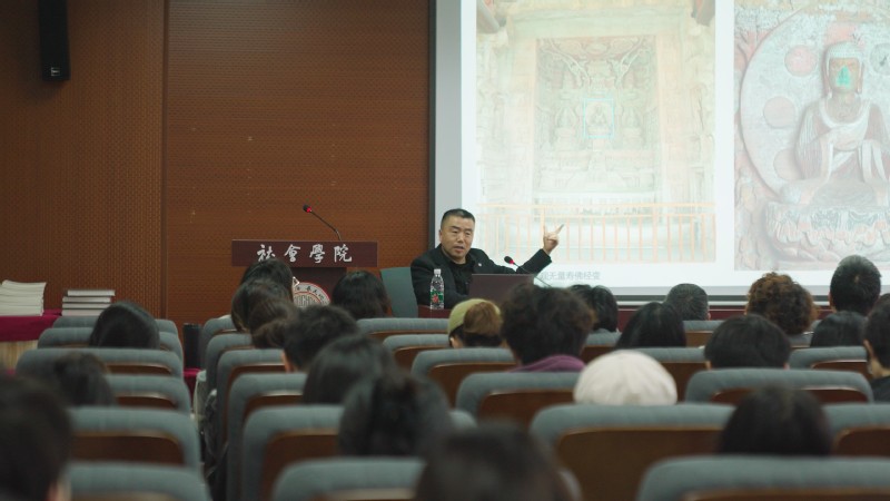 随后,米德昉就“唐宋历史中的雕塑艺术——大足石刻图像谱系”开展讲座,让在座师生感受世界文化遗产大足石刻的魅力和深厚的文化底蕴。米博士从五个阶段生动讲述了8世纪中叶以后中国北方石窟营造活动渐次走向衰落,于此续绝之际,位于长江流域的重庆大足境内摩崖造像为何能异军突起?以北山、石篆山、石门山、南山、宝顶“五山”为代表的大足石刻,成为了中国石窟艺术史上继南北朝、隋唐之辉煌后出现的又一次鼎盛。