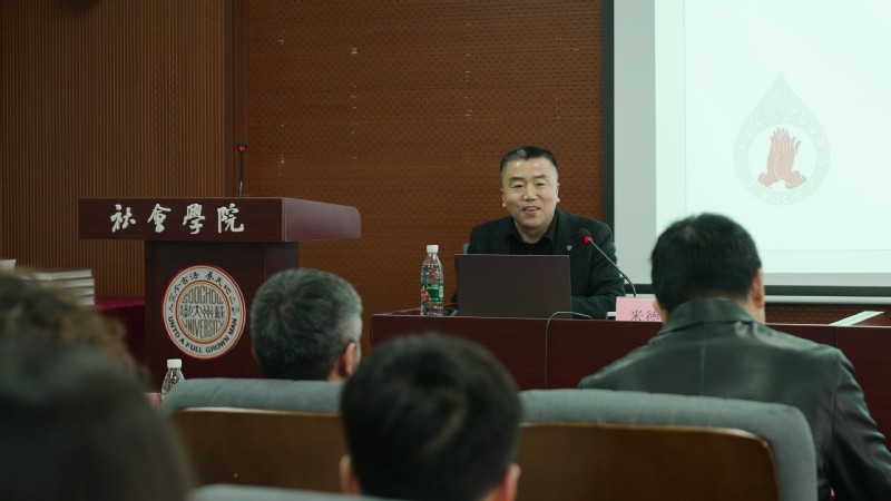 3月28日,“唐宋历史中的雕塑艺术——大足石刻图像谱系”苏州大学“信仰公开课”校级示范课(素养公开课)在苏州大学独墅湖校区1005-5448教室顺利举行。大足石刻研究院大足学研究中心主任、历史学博士米德昉担任主讲嘉宾。大足石刻研究院副院长龙伟,社会学院院长黄鸿山,党委副书记、副院长朱今,院团委和学生工作办公室相关老师出席活动。2025年苏州大学“青年马克思主义者培养工程”春季班学员,社会学院“青年马克思主义者培养工程”学员、学生代表等参与此次活动,活动由社会学院院长黄鸿山主持。