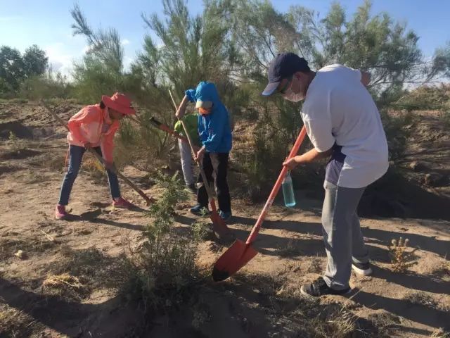 五年里,黄老师每年坚持来到这里防沙固林,每一年夏天都来到这里似乎成了一种执着,在这里能够学会更好的反思自己,反思自己的生活。当你走在荒漠中,看到仍然顽强生存的植被,你会有原来对生活的不满甚至失望,产生一种释然,学着从困境中感悟生命,你会觉得生命远远高于一切。