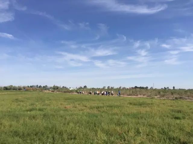 (图为志愿者从基地进入沙漠途中,路边已是绿色)