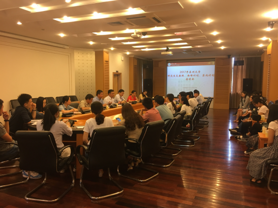 6月26日,2017年苏州大学研究生支教团、西部计划、苏北计划座谈会在本部红楼217会议室举行。校党委副书记、副校长江作军,学生工作部(处)部(处)长孙庆民,党委研究生工作部部长宁正法,校团委书记肖甫青、副书记朱今,新闻中心副主任丁姗,2017年第十九届研究生支教团、西部计划、苏北计划志愿者及第十八届研究生支教团代表出席了座谈会,会议由肖甫青主持。