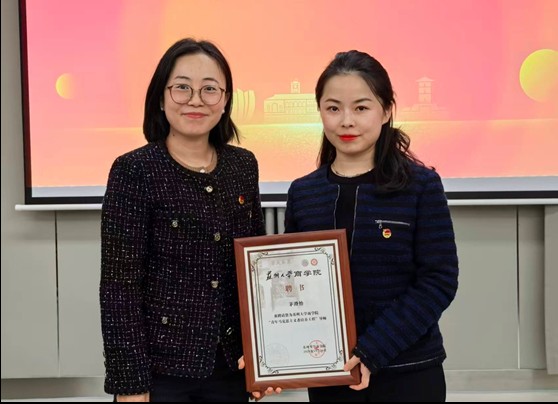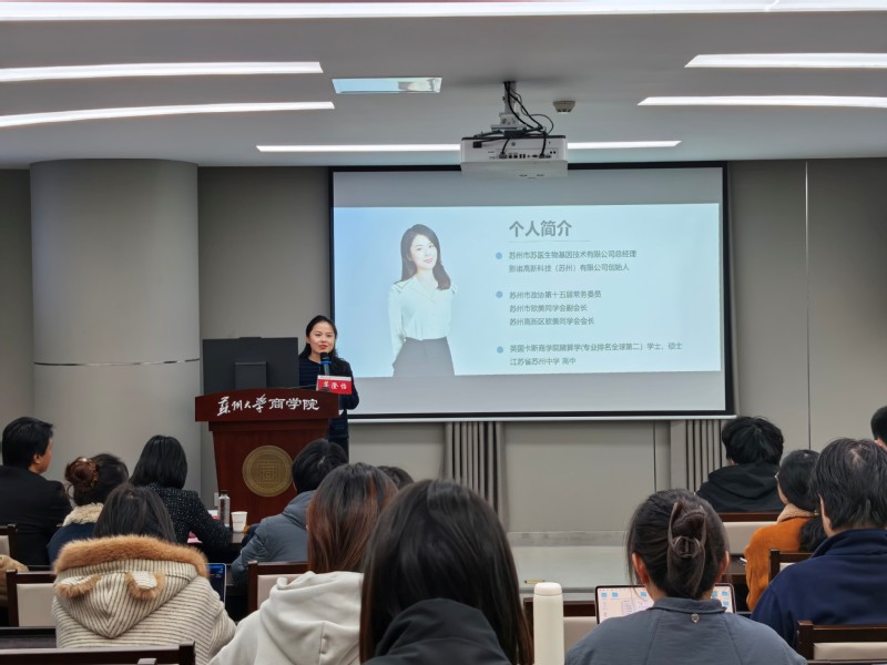 11月26日晚,我校在天赐庄校区财经科学馆215报告厅举办“三代同心人,一条同心路”苏州大学“信仰公开课”校级示范课。苏州市苏医生物基因技术有限公司总经理、影诺高新科技(苏州)有限公司创始人、苏州市政协第十五届常务委员、苏州大学高管校友、企业导师茅澄怡应邀授课。校团委副书记徐娜,商学院党委副书记、副院长黄晓辉,商学院团委书记孙正嘉出席活动。2025年苏州大学“青年马克思主义者培养工程”秋季班学员、商学院“青年马克思主义者培养工程”学员参与课程。本次活动由商学院团委指导老师胡强迪主持。
