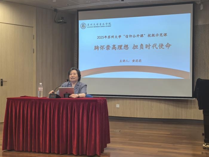 5月28日,我校在独墅湖校区505号楼二楼报告厅举行“胸怀崇高理想,担负时代使命”苏州大学“信仰公开课”校级示范课(梦想公开课)。著名文艺评论家、时任辽宁省艺术研究所副所长、研究员黄莉莉老师授课。音乐学院党委副书记、副院长杨燕出席活动,苏州大学“青年马克思主义者培养工程”春季班学员、音乐学院“青年马克思主义者培养工程”全体学员参加活动。