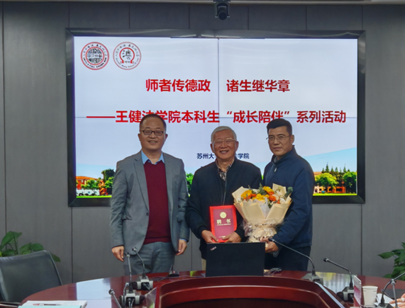 活动伊始,黄海华作为杨海坤的弟子,向杨海坤献上花束,祝贺恩师荣膺中国行政法学“终生成就学者”获得者荣誉,并深情回顾与感谢恩师的谆谆教诲。程雪阳为杨海坤颁发王健法学院“成长陪伴计划”德政导师聘书。