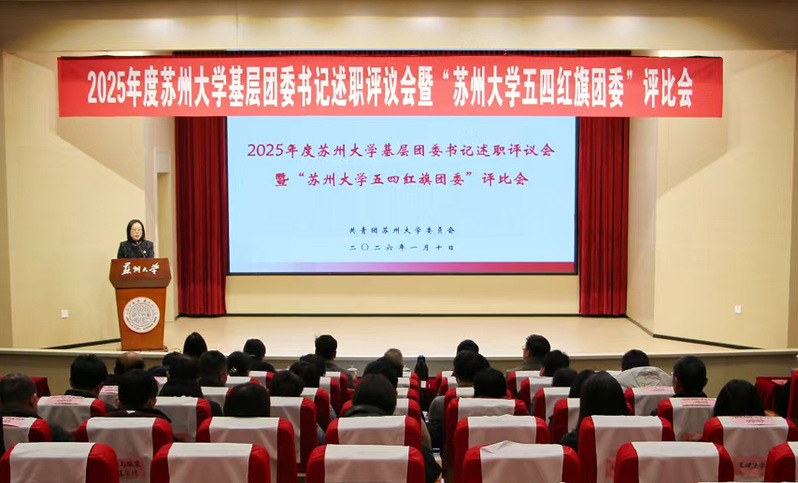 1月10日,我校2025年度基层团委书记述职评议会暨“苏州大学五四红旗团委”评比会在天赐庄校区红楼学术报告厅举行。校党委常委、副校长查佐明,党委教师工作部部长尹奎,党委组织部副部长郭才正,党委宣传部副部长尹婷婷,党委学生工作部(学生工作处)副部(处)长成龙,校团委书记严韵致,各学院(部)分管学生工作党委领导、基层团组织负责人、校团委全体工作人员和青年代表出席会议。会议由校团委副书记徐娜主持。