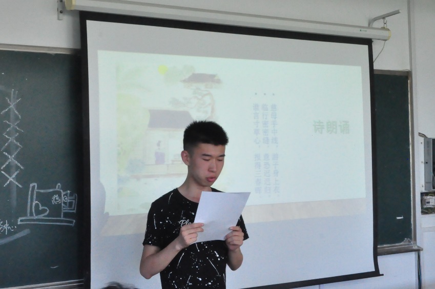 随后,主持人为在座同学介绍了母亲节的由来,以及人们喜欢在母亲节送康乃馨的缘由。同时还邀大家一同分享往日与母亲共同生活的点点滴滴,现场一度弥漫着甜蜜,温馨的气氛。紧接着,来自青年志愿者服务中心的一名同学为大家带来了深情的诗朗诵,将现场气氛推向高潮。