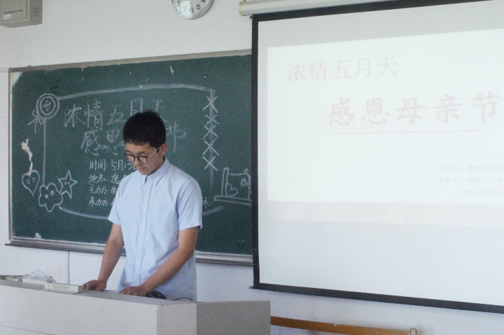 为了弘扬中华民族传统“孝”文化,增强学生对母亲的感恩之情,促进学生心理健康成长,5月13日下午,物理与光电·能源学部在逸夫楼423举行了母亲节感恩活动。本次活动由物理与光电·能源学部团委主办,物理与光电·能源学部青年志愿者服务中心承办。学部各年级同学自主踊跃参加。