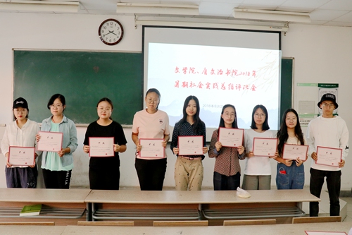 在同学们纷纷结束暑期社会实践的同时,文学院团委也对各个实践团队的完成情况进行了评定。在考量了各团队的材料提交、平台投稿、PPT及视频展示、实践报告、宣传海报等情况后,文学院团委最终评定出了14个优秀团队和30位优秀个人:“青春大学习之学习习近平新时代中国特色社会主义思想”读书交流会等14个暑期社会实践团队荣获了优秀团队奖,樊荣、朱贵昌、曾文宇等30位同学荣获了优秀个人奖。在会议上,17级辅导员陆亚桢老师为荣获奖项的优秀团队代表以及优秀个人颁发了奖状,并对同学们在暑期社会实践中的表现提出了表扬。