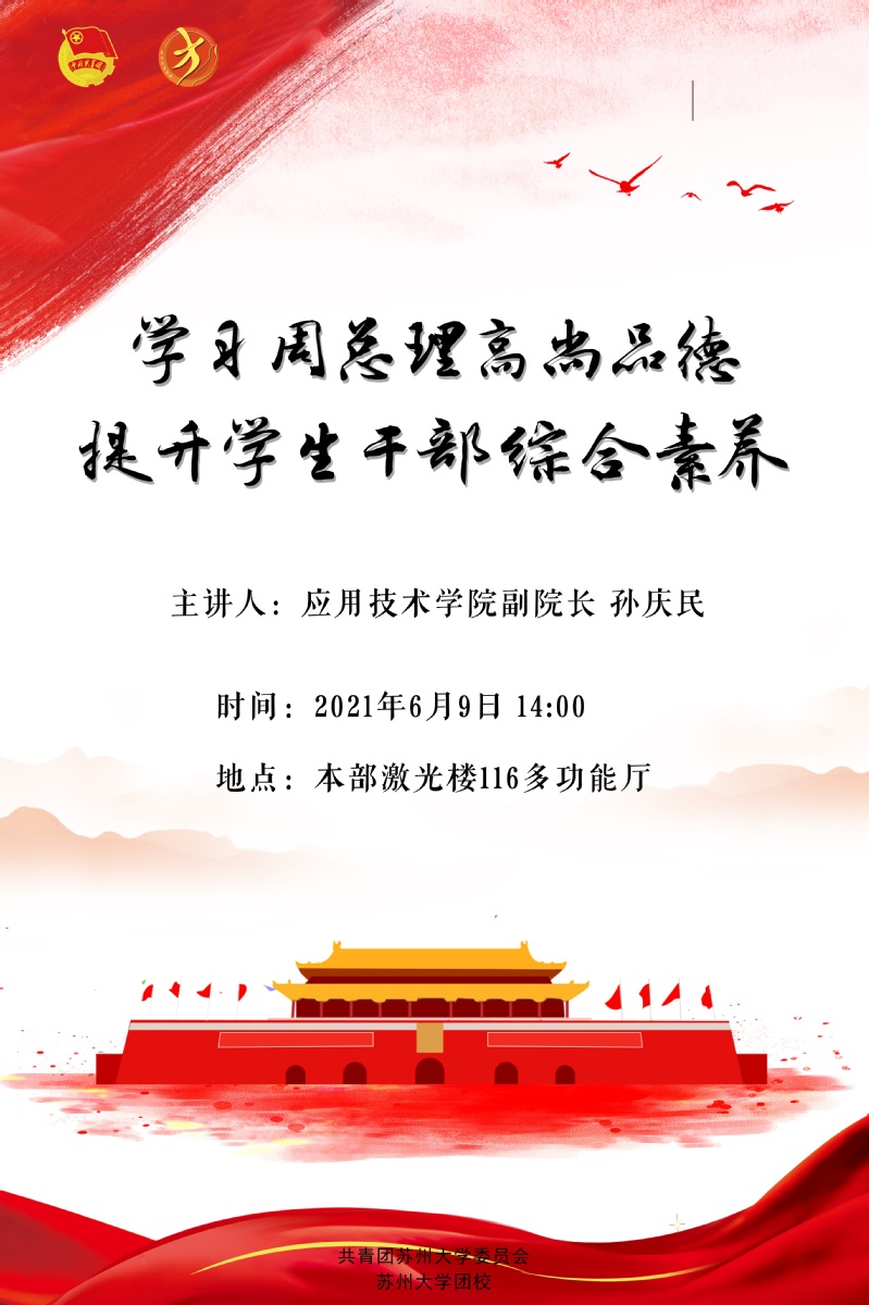 苏州大学“青马工程”精英人才计划集中授课——学习周总理高尚品德,提升学生干部综合素养 主讲人:孙庆民